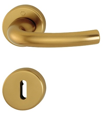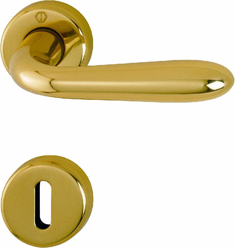 Maniglia HOPPE modello SEATTLE per porta interna su rosetta e bocchetta foro normale in alluminio dorato lucido