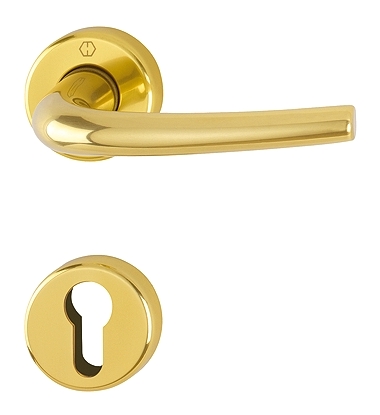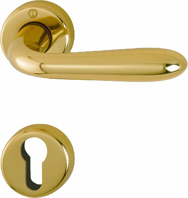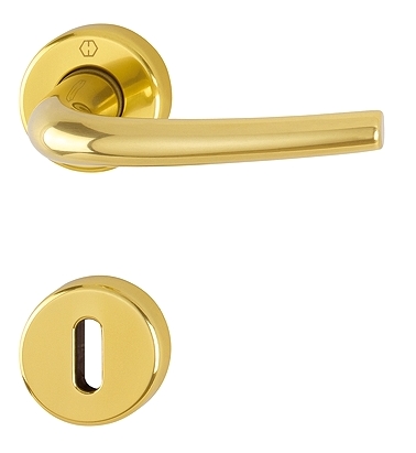 Maniglia HOPPE modello SEATTLE per porta interna su rosetta e bocchetta foro yale in alluminio dorato lucido