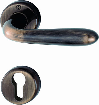 Maniglia HOPPE modello SANTIAGO per porta interna su rosetta e bocchetta con foro yale in ottone bronzato