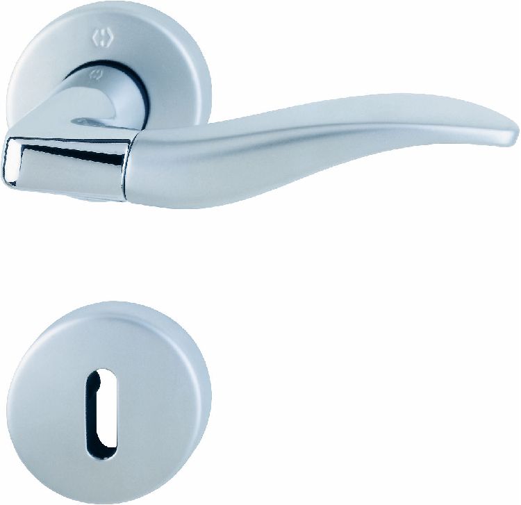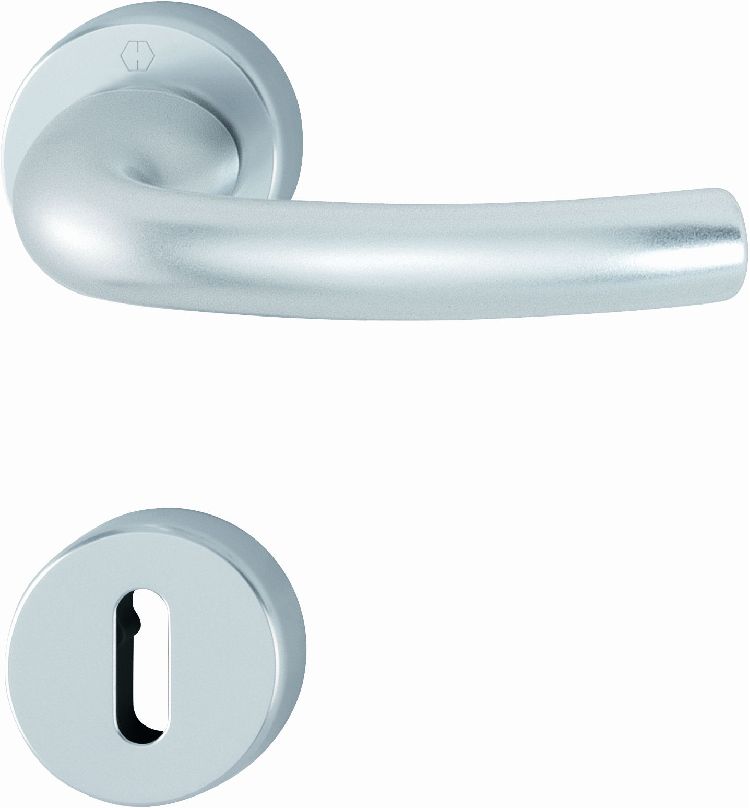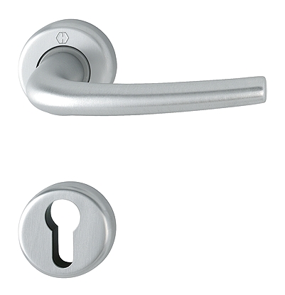 Maniglia HOPPE modello SEATTLE per porta interna su rosetta e bocchetta foro yale in alluminio satinato