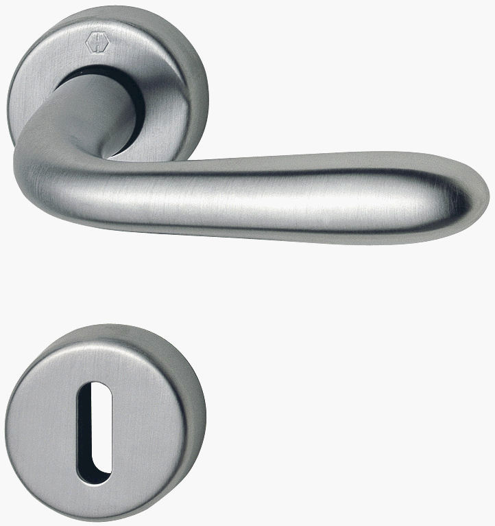 Maniglia HOPPE modello STOCKHOLM per porta interna su rosetta e bocchetta con foro normale in acciaio inox satinato