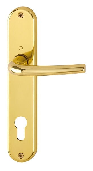 Maniglia HOPPE modello SEATTLE per porta interna su placca con foro yale in alluminio dorato lucido