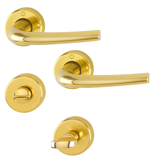 Maniglia HOPPE modello SEATTLE per porta interna su rosetta e bocchetta con nottolino wc diametro in alluminio dorato lucido