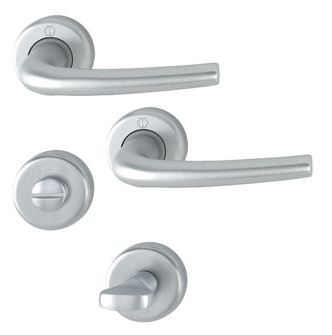 Maniglia HOPPE modello SEATTLE per porta interna su rosetta e bocchetta con nottolino wc diametro in alluminio satinato