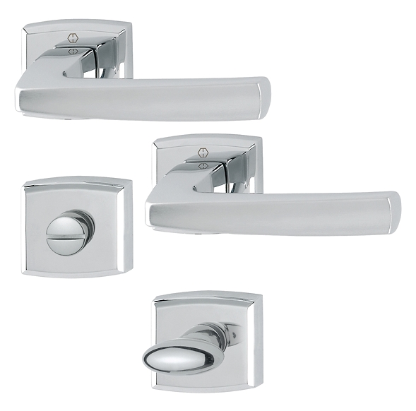 Maniglia HOPPE modello ACAPULCO per porta interna su rosetta e bocchetta con nottolino wc in ottone cromo lucido/satinato