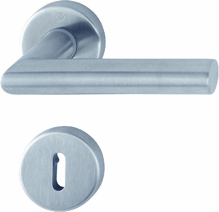 Maniglia HOPPE modello AMSTERDAM per porta interna su rosetta e bocchetta con foro normale in acciaio inox satinato