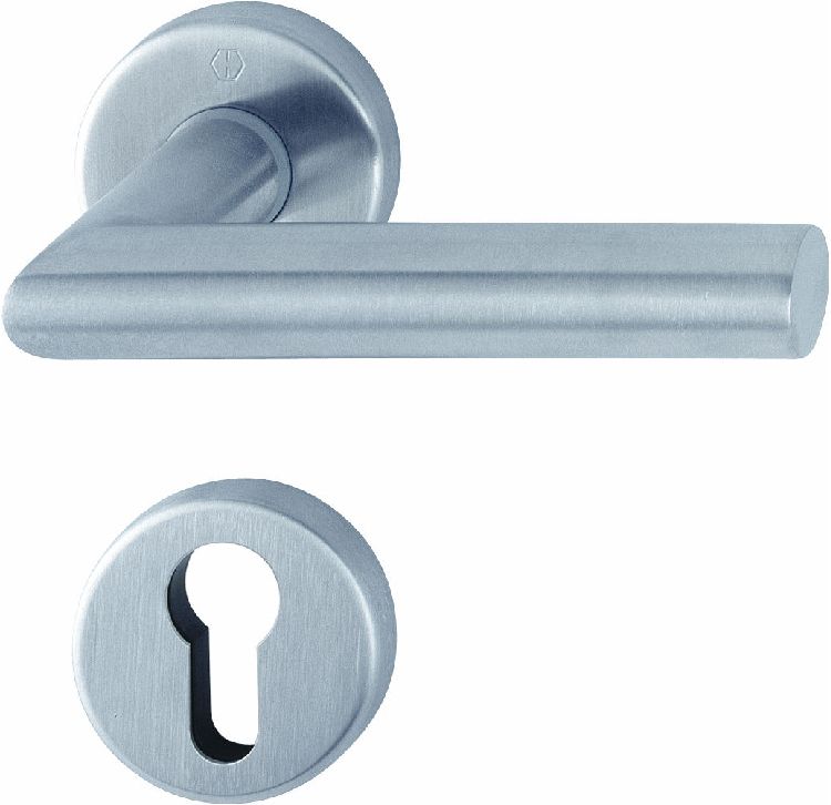 Maniglia HOPPE modello AMSTERDAM per porta interna su rosetta e bocchetta con foro yale in acciaio inox satinato