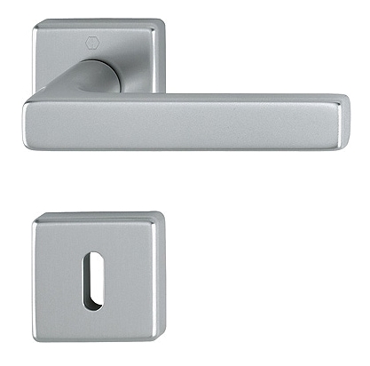 Maniglia HOPPE modello DALLAS per porta interna su rosetta e bocchetta con foro normale in alluminio titanio