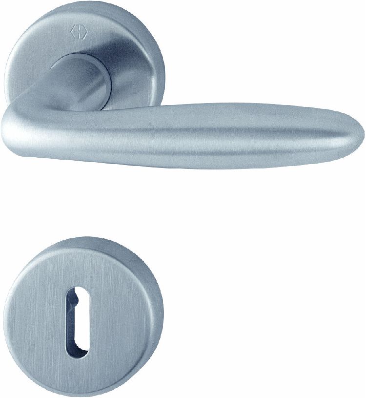 Maniglia HOPPE modello VERONA per porta interna su rosetta e bocchetta con foro normale in acciaio inox satinato