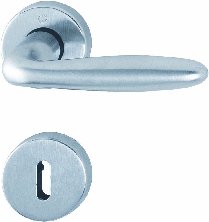 Maniglia HOPPE modello VERONA per porta interna su rosetta e bocchetta con foro normale in ottone cromo satinato