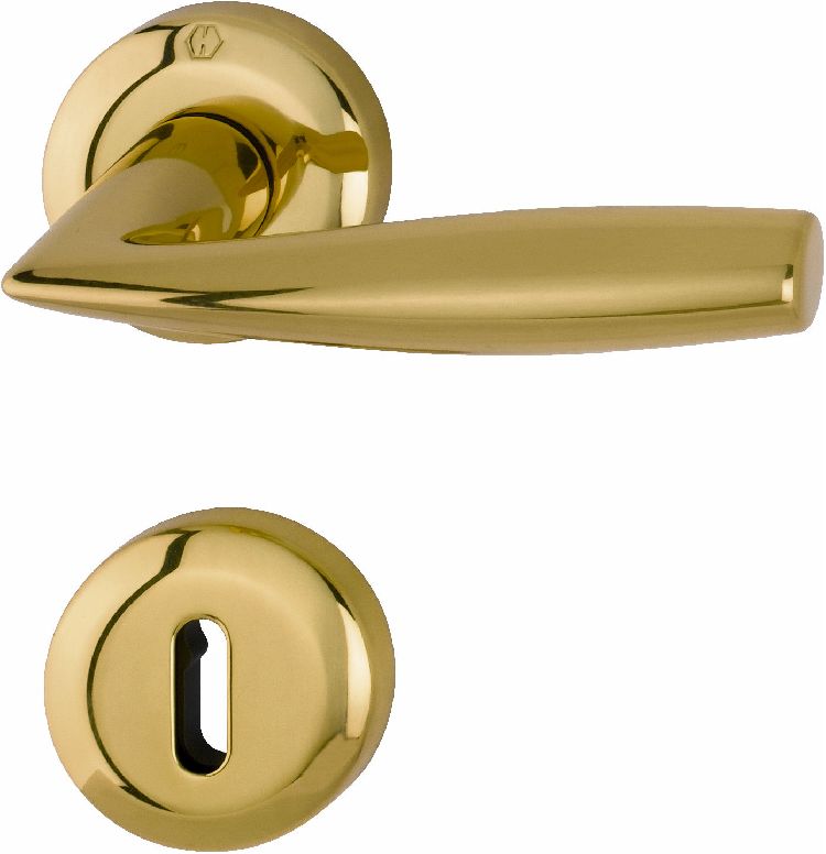 Maniglia HOPPE modello VITORIA per porta interna su rosetta e bocchetta con foro normale in ottone lucido