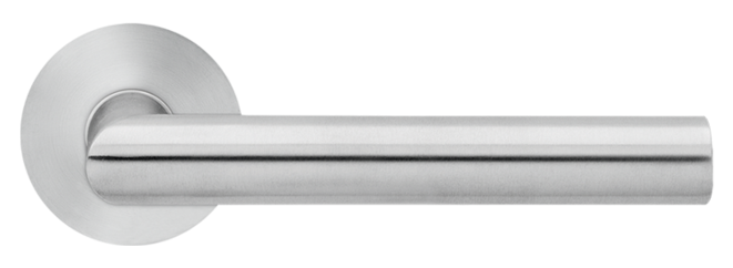 Maniglia KARCHER DESIGN modello RHODOS per porta interna su rosetta e bocchetta bassa con foro normale in acciaio inox satinato