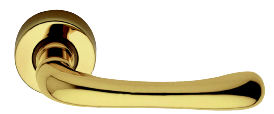 Maniglia REGUITTI modello MONIA per porta interna su rosetta e bocchetta 004 con foro normale in ottone lucido verniciato