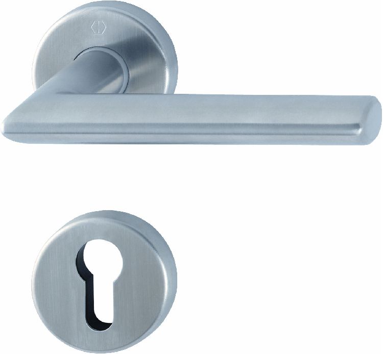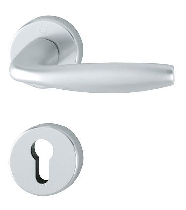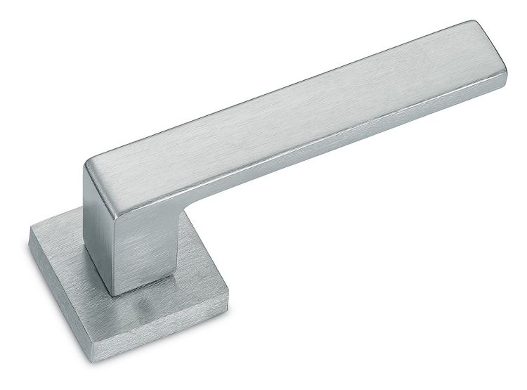 Maniglia SICMA modello SHELBY per porta interna su rosetta e bocchetta con foro yale in zircal cromo satinato